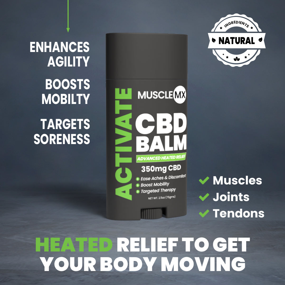 Activate CBD heated muscle balm warms up and relieves sore muscles, joints and tendons. Our heated balm helps with injury prevention and gives your body the boost it needs.