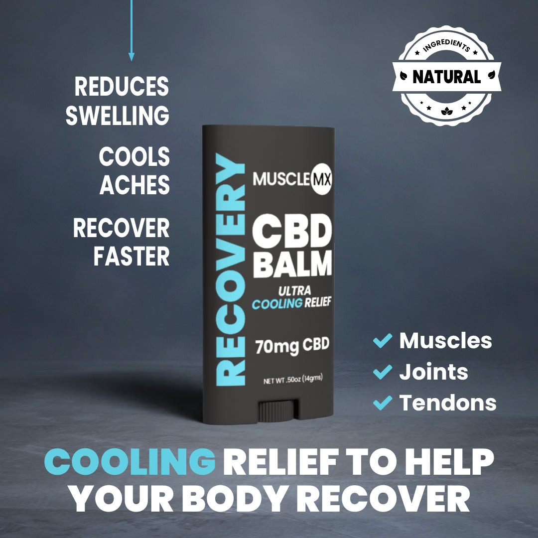 Need to chill your achy muscles, joints or tendons? RECOVERY Balm has you covered! With its blend of CBD, menthol, tea tree, and eucalyptus, this balm soothes your body's discomforts in minutes.